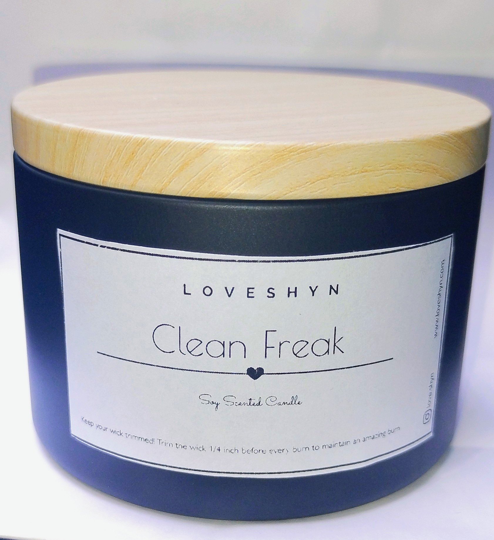 Love Shyn creates soy candles in small batches using premium soy wax. All of our fragrance oils are phthalate-free. To ensure a safe and clean burn, always trim the wick to 1/4 before relighting.